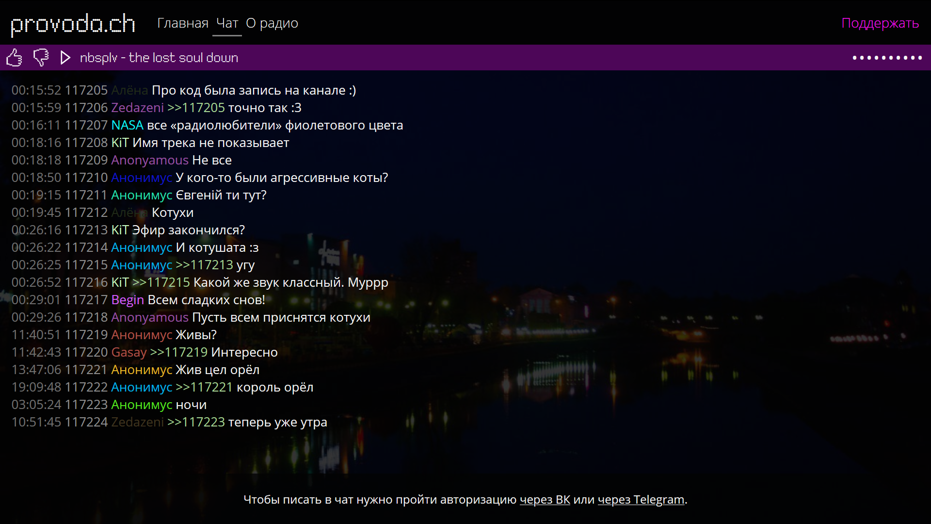 Привет. На связи Аки — основатель Проводача. Радиостанция была запущена 1 сентября 2015 года. Всё произошло достаточно внезапно — мне просто приснился сон, как я качаюсь на качелях тёплым летним вечером напротив большого панельного дома, легонько так покачиваюсь, а от дома слышны звуки... Кто-то моет посуду и звенит тарелками, в квартире напротив встретились два друга, которые не виделись очень много лет, а на первом этаже бабуля смотрит телевизор, какой-то сериал. Но главное, что всё это сопровождается музыкой — музыкой, которая играет на этой радиостанции. После такого сна я сразу понял: надо делать радио. Написал своей тогда ещё знакомой, описал идею, на что она отреагировала крайне положительно. Быстро был придуман дизайн, из предыдущих наработок слеплен программно-аппаратный комплекс для вещания и вот — Проводач вышел в эфир.